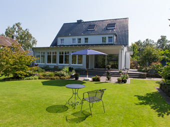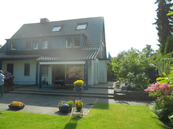 Anbau an ein Einfamilienhaus mit Grundrissänderungen und Erweiterung der Garage. Planung der Außenanlagen.