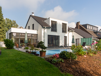 Energetische Kernsanierung eines Einfamilienhauses mit Neubauteil, Errichtung eines Außenschwimmbeckens sowie Möbelbau.
